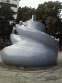 てびっくりしました。結構、麒麟のマイナーなファンである私は、田村クンが公園に住んでいたという話はこの本が出る前から知っていたのですが、そんなうちのすぐ近くだったということに、本当に驚き、またすごく関心が湧いてきたわけです。彼が中学2年生だったのは14年ぐらい前の話のようですから、どこかで中学生だった田村クンとすれ違っていたかもしれません。通っていた高校も吹田高校だそうですから、十分見かけている可能性はあります。彼のお兄さんとお姉さんがしばらく住んでいたのはいざなぎ神社横の公園で、その後、居を移したのが万博公園近くのタコ公園って、うちの子供たちも遊んだことがあるところです。あそこに住んでいたなんて……。で、ミーハー社会学者としては、早速田村クンが住んでいた公園を探しに行きました。彼の記述は正確ですぐに見つかりました。遊んでいた子供たちに、「最近この公園、有名になっているの、知ってる?」と聞くと、「うん、麒麟の田村でしょ?」とみんな知っていました。で、確かにその滑り台は彼の記述通り「巻き巻き○○○」と言いたくなるような形をしていました(写真参照)。ああ、彼はここで幾晩も寝ていたのかあと思ったら、なんだか妙な感動の仕方をしてしまいました。もしも、実際にその時に彼とここで会っていたら、私は何かできただろうか、なんてことも考えてしまいました。本は買って読むほどの価値はないと思いますが、吹田の温かい人々に救いの手を差し伸べてもらって田村クンの今があると思うと、「麒麟、今年こそM1を取れ!」と応援したくなっています。(2007.10.20)