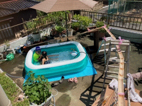 自分が子供の時は、ここまでする父では無かった(と言うか、あまり遊んで貰った記憶はない)のですが、やはり孫の為となると、力の入れ方が全く違います。笑。来年は竹のコースも工夫(勢いよく流れるそうめんが脱線しないよう、コースを深めにするらしい)し、コースを支える三脚も竹で作るから、楽しみにしててね!っと自らハードルを上げておりました。笑