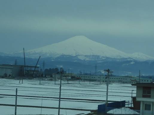 鳥海山は秋田県と山形県の県境にあり、秋田では「秋田富士」と呼ばれ、山形では「山形富士」と呼ばれるそうです。岩手山は「岩手富士」と呼ばれるそうですが、見る角度によって様々な姿を見せるので、「片富士」と呼ばれたりもするそうです。ともに車窓から撮った写真なので綺麗には撮れていませんが、独立峰としてそびえる山が信仰の対象になるのはよくわかるなあと実感できる美しさでした。