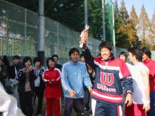 ソシオカップとしての成績は、16期生は第1試合で、永井ゼミを12対6で破り、2連勝で全体の準優勝。2試合とも本気でやっていたら、このチームは十分優勝できるチームだった。でも、「ソシオカップは優勝より楽しむことが大事」という片桐ゼミの伝統を守り、品のよい準優勝は見事だった。15期生は第2試合で、山本ゼミに9対10で2試合連続のサヨナラ負け。しかし、16期生とは楽しみながら、ガチンコ勝負を挑んできた山本ゼミとは十分いい勝負ができたので、2連敗とはいえ、みんなおおいに満足感を得る。優勝は古川ゼミ。写真は、ソシオカッ