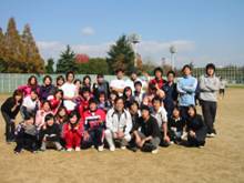 (07.11.21)第6回ソシオカップ開催。片桐ゼミは第1試合岩見ゼミと対戦するものの、四球、エラーの連続で自滅して5対11と大敗。あまりに締まりのない試合にK氏怒り、続く第2試合の山本ゼミとの対戦には自らマウンドに上がり、3イニングをパーフェクトに抑え、8対4の勝利を導く。(まあ打たれたところに、ちゃんと守っている人がいただけですが。)打っても1打数1安打(写真上)。山本ゼミとはソシオカップと名付けられる前の2000年の大会も含めて、過去0勝4敗だったので、ようやく一矢を報いることができて溜飲を下げる。出場希望者全員を出場させることもできたので、みんなそれなりに楽しめたのでは。ソフトボールの優勝は今年も夢に終わったが、応援出場含めて参加者38名(写真下)、夜の合同懇親会の参加者35名は例年通り圧勝。なお、優勝は永井ゼミに大勝ちした貯金で、意外にも架場ゼミ!実力的には、熊野ゼミ(2勝0敗)、杉野ゼミ(0勝2敗)が強かった。この2チームの対戦はお遊びのソシオカップというレベルのものではなく、緊張感のある本格的な試合だった。