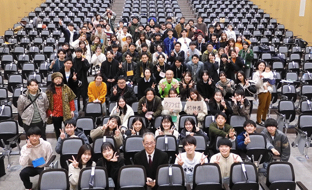 21.12.11)第30回片桐ゼミの集いを2年ぶりの対面で実施(幹事:入江香穂・橋本知典・藤田拓哉・山岡千夏と28期生)。オンライン40名を含めた参加者は138名。たとえお酒はなくても対面で集まるのはやはり素晴らしいことだと誰もが実感する。ソシオAV大教室でたっぷりソーシャルディスタンスを取り、マスクをして実施。最後の集合写真の時だけ集まり、マスクを取って記念撮影をする。