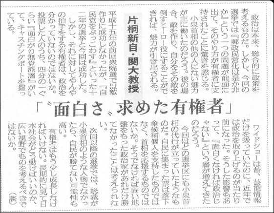 ここに掲載したのは、2005年9月12日付産経新聞夕刊〔第4版〕に掲載された私