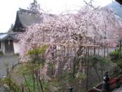 でしょうが、あの桜は接ぎ木でしか増えない品種なので、ほとんど同じような花の色や枝振りですが、醍醐寺の桜は枝垂れ桜が中心で、一木一木がそれぞれ個性を持っています。立派な枝垂れ桜が何本もあり、ソメイヨシノばかりの花見とはまったく違う気分を味わえました。桜の樹の下には死体が埋まっていると言われるのですが、枝垂れ桜を見ていると、確かにそんな気がしてきます。垂れた枝が幽霊を思い起こさせるのでしょう。昼間に見る分には大丈夫ですが、夜見たら、ちょっと怖いような気がします。でも、桜はやはりそれぞれの個性が出ている枝垂れ桜が見甲斐があって好きです。さて、桜以外の醍醐寺の見所も紹介しておきましょう。三宝院の庭はとてもよいです。写真を撮ってはいけないとのことだったので、お見せできないのが残念です。そして、霊宝館は、その名の通り宝だらけです。秀吉の花見がらみの歴史的資料も山のようにありますし、仏像をはじめとする仏教関係の品も素晴らしいものばかりです。(国宝・重文だけで4万点もあるそうです。未指定で同じ程度の価値があるものを含めると10万点!を超えるそうです。)三宝院、霊宝館、そして国宝の金堂や五重塔がある伽藍の3箇所が見られるセット券で1500円ですが、これは高くはないと思います。お金を惜しんで1箇所(600円)だけにしている人もいましたが、見ない方がもったいないと思います。