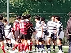 レフリーと相手チームの皆さんへ感謝の気持ちを伝えました。 会場を設営/撤収のお手伝いをしていただき、 ゲームもさせていただきました高槻中学校の皆さま、 レフリーと大会関係者の皆さま、ありがとうございました。 そして応援にお越しいただきました 保護者サポーターの皆さま、ありがとうございました。