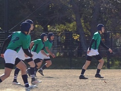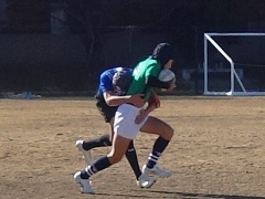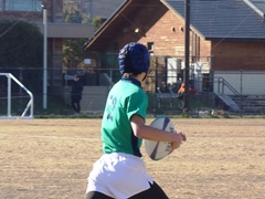 | 中2生主体チームの初ゲーム。グリーンジャージ を着用して |
