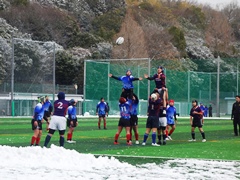 三島・豊能地区中学校選抜チームが交流試合を行いまして一中生からも 2, 1年生が参加させていただきました。 1日目は茨木ラグビースクールさん、2日目は高槻ラグビースクールさんにお越しいただきました。 特に 2日目は大雪の中、スタッフの皆さまにもお手伝いいただきながら、みんなで雪かきをしてから実施させていただきました。 お世話になりました三島・豊能地区選抜チーム, 茨木ラグビースクール, 高槻ラグビースクールのプレーヤーとスタッフの皆さま、ありがとうございました。 以下は当日の様子です。三島・豊能地区中学校選抜チームのメンバーは青ビブスや紫色ジャージを着用しています。 |